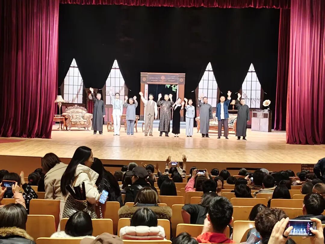 剧终幕落。在静默与期待中,导演、演员悉数登场、立于前台,三鞠躬致谢观众。观众则全场起立,报以长时间热烈掌声,久久不肯散去。