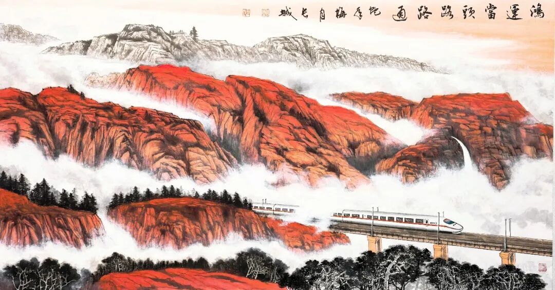 大时代大格局,需要丹青艺术有大气象大精神。邓长城先生观览时代发展脉络,是主动把自己的丹青创作与时代精神相融相合的智慧!他用浓墨重彩,写意华夏丰神,画题件件拥有正能量!站在他的丹青作品面前仰观,必然精神抖擞,大振心颜!因为有用画画表达东方审美格局的主动性,所以他的画题、画旨、画风、画技都有超凡脱俗的影响力,是一位技法与情怀双盈皆丰的艺术家,非画匠之拘泥,亦非画奴之无趣,起笔落笔,总是可以抒发统摄人心的正大气象!邓先生画画,对法度磨砺要求相当严谨,专业性的问题解决得相当到位。