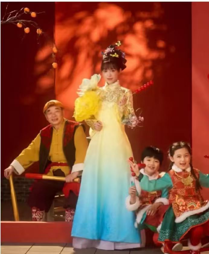 (李子柒佩戴竹编牡丹花在央视春晚上)