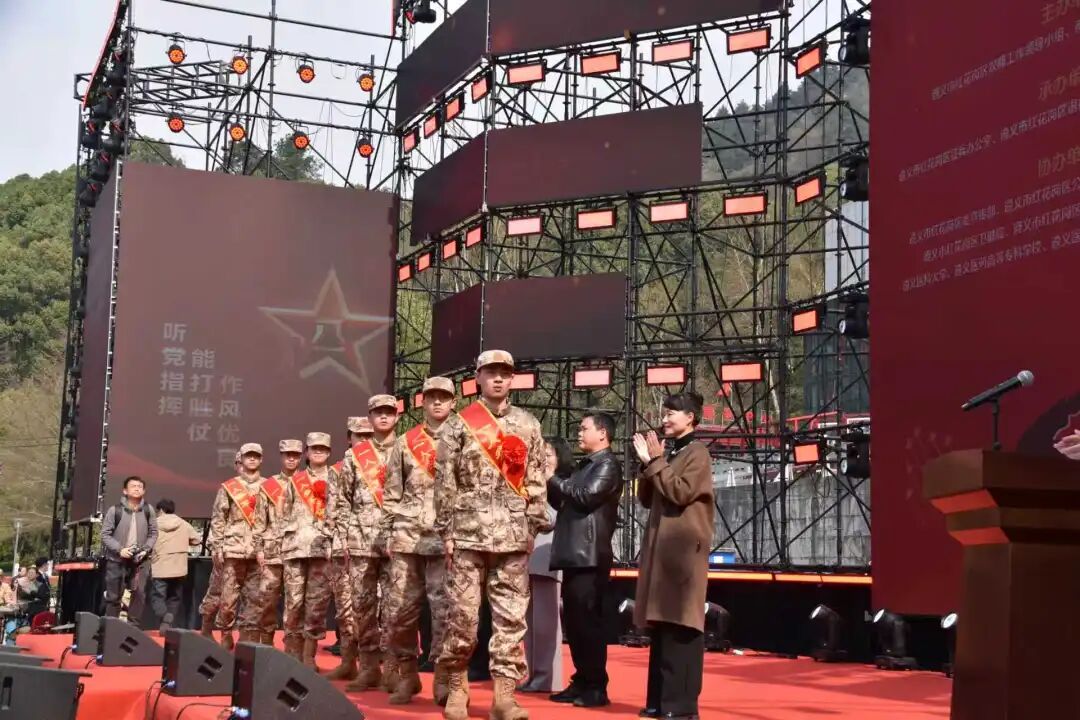为继承和发扬红色革命老区光荣传统,进一步强化军人荣誉感与使命感,营造红花岗区拥军优属、拥政爱民和征兵工作良好的氛围,3月13日上午,红花岗区2026年上半年欢送新兵入伍、喜迎老兵退伍、表彰立功受奖大会在凤凰山广场召开。遵义军分区大校副司令员熊献锋,市人大常委会副主任、红花岗区委书记、区双拥工作领导小组组长、区人武部党委第一书记刘东明出席活动并讲话。