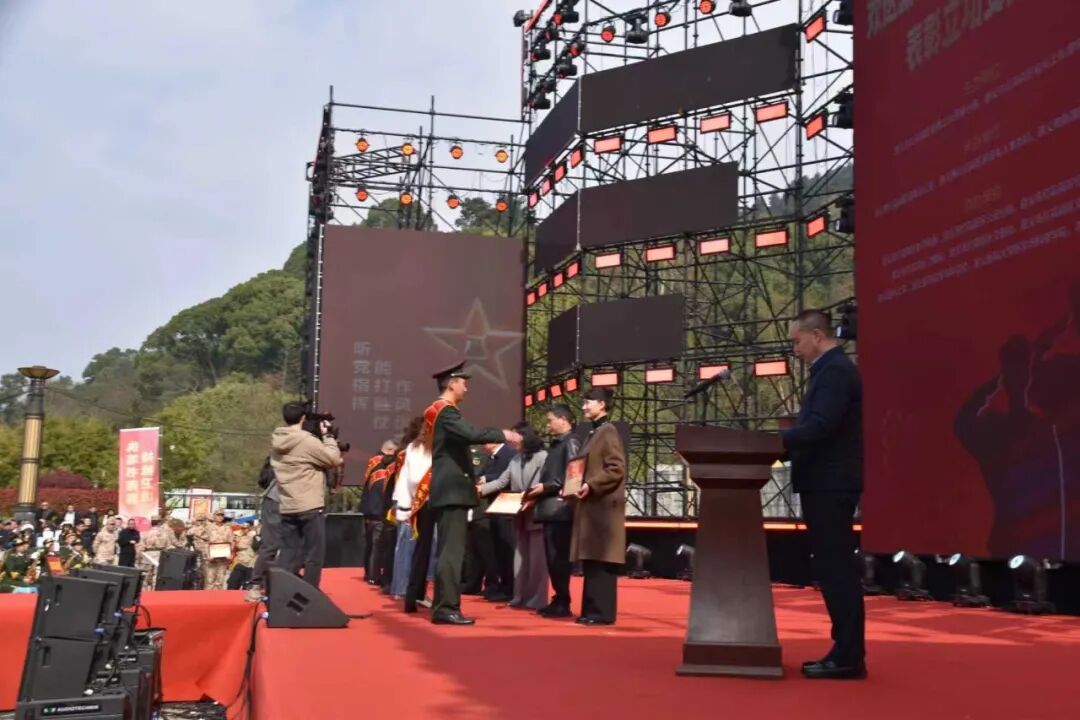 活动在庄严的中华人民共和国国歌声中拉开帷幕,军地领导依次为2026年上半年入伍新兵代表佩戴光荣花,为新兵家长代表颁发光荣牌,为立功人员代表颁发喜报,现场洋溢着崇军尚武、热烈温馨的浓厚氛围。