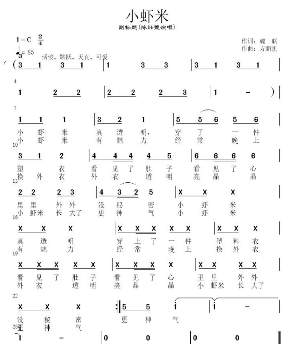 在音乐创作上,方鹏凯采用轻快活泼的旋律与简洁的节奏,契合儿童歌曲易于传唱的特点。歌曲既是对自然生命的童趣赞歌,也暗含“成长如同小虾换壳,每一次蜕变都更接近更好的自己”的积极寓意,在艺术性与教育性之间取得了自然平衡。
