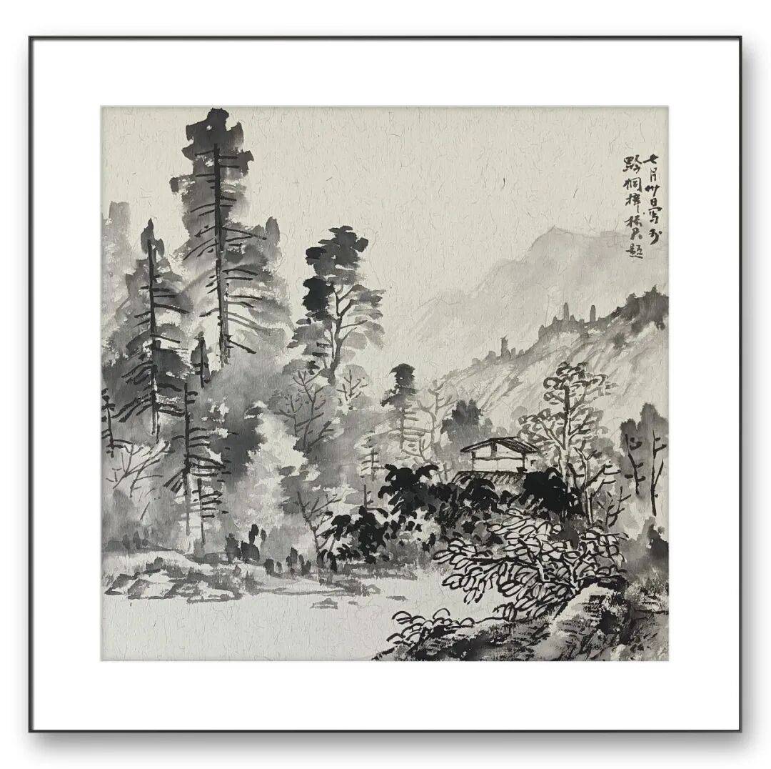 墨法运用上,唐振君先生将积墨、破墨、泼墨技法融会贯通,营造出层次丰富、气韵生动的墨色世界。他善用浓淡墨色对比,浓墨点苔提神,淡墨晕染造势,积墨层层叠加则赋予山石厚重质感,破墨氤氲间又现云气缥缈。其彩墨山水更是一绝,在坚守“色不碍墨、墨不碍色”的原则下,以青绿、赭石等色彩适度点染,既避免了纯水墨的单调,又杜绝了彩墨杂糅的艳俗。淡绿敷染山峦,墨青晕染水岸,色彩与墨色相互映衬,既还原了山水的自然生机,又保持了中国画的雅致格调,让彩墨山水摆脱了“艳俗”窠臼,走出了独具特色的创作路径。