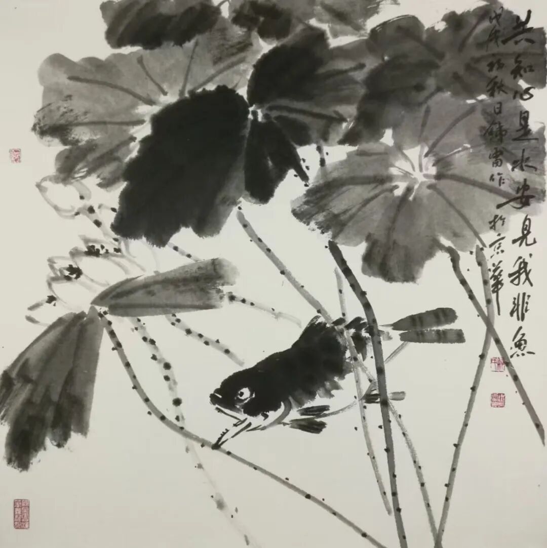 墨荷游鱼 50x50cm