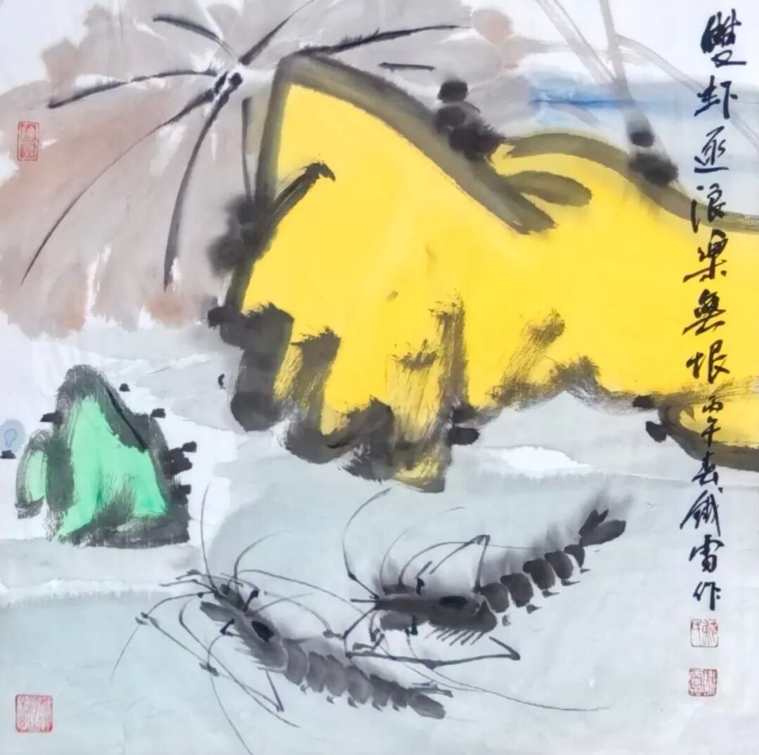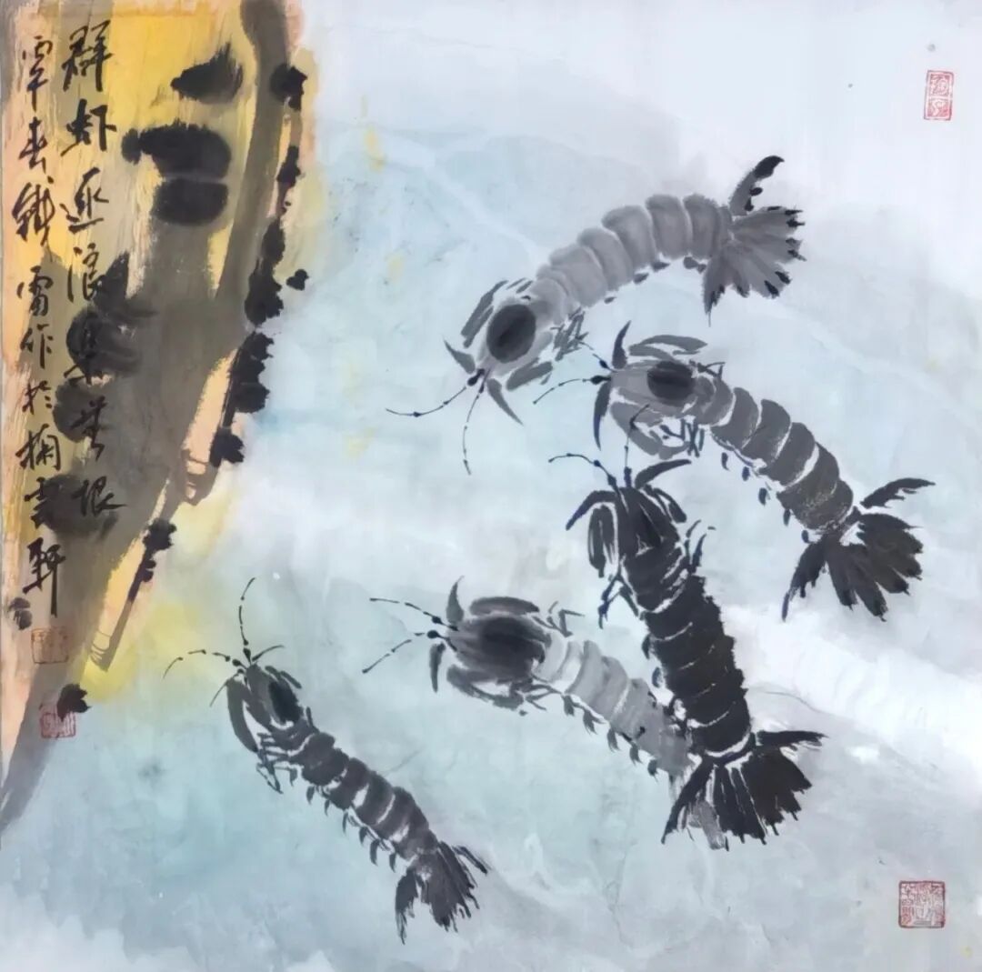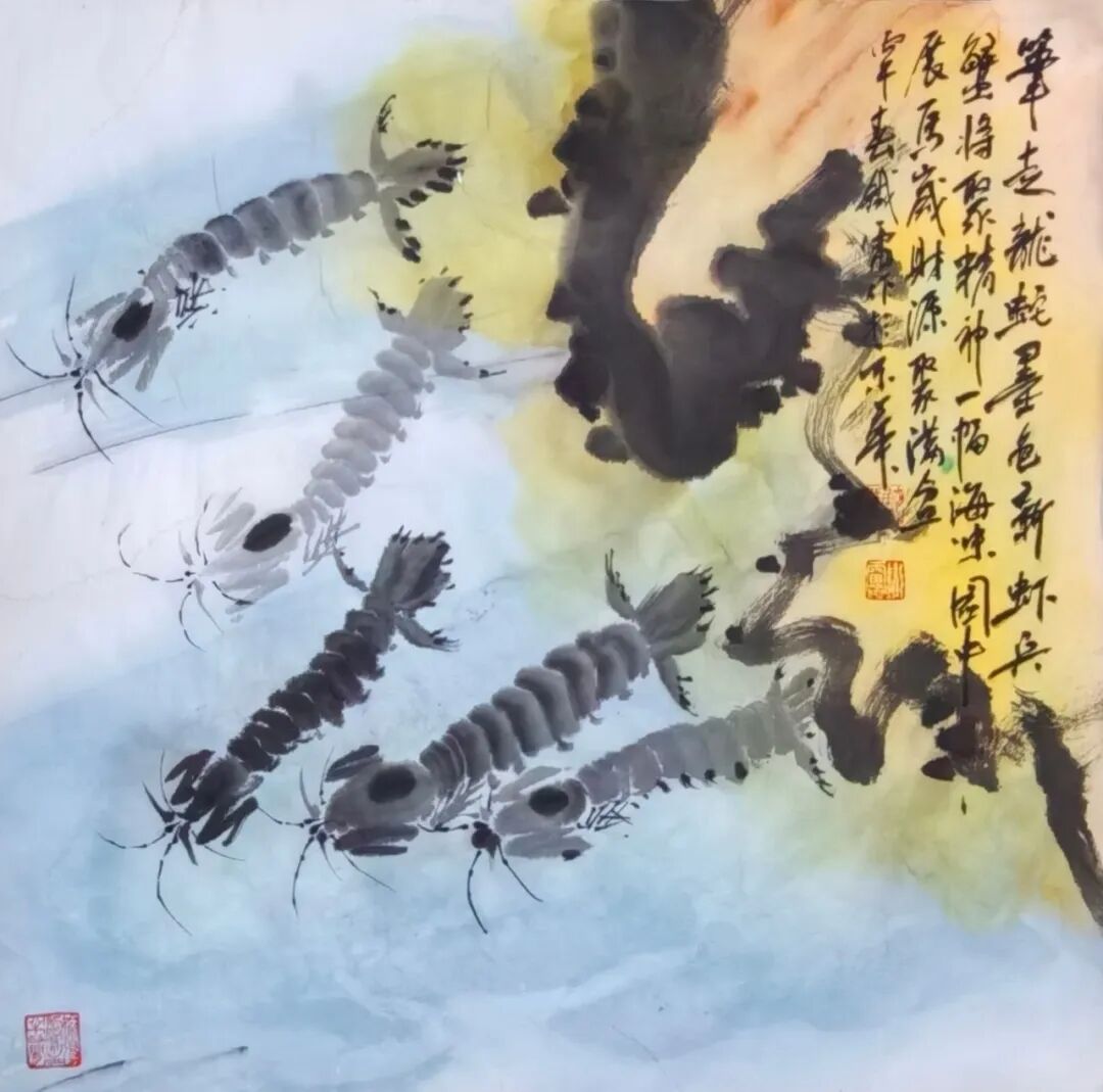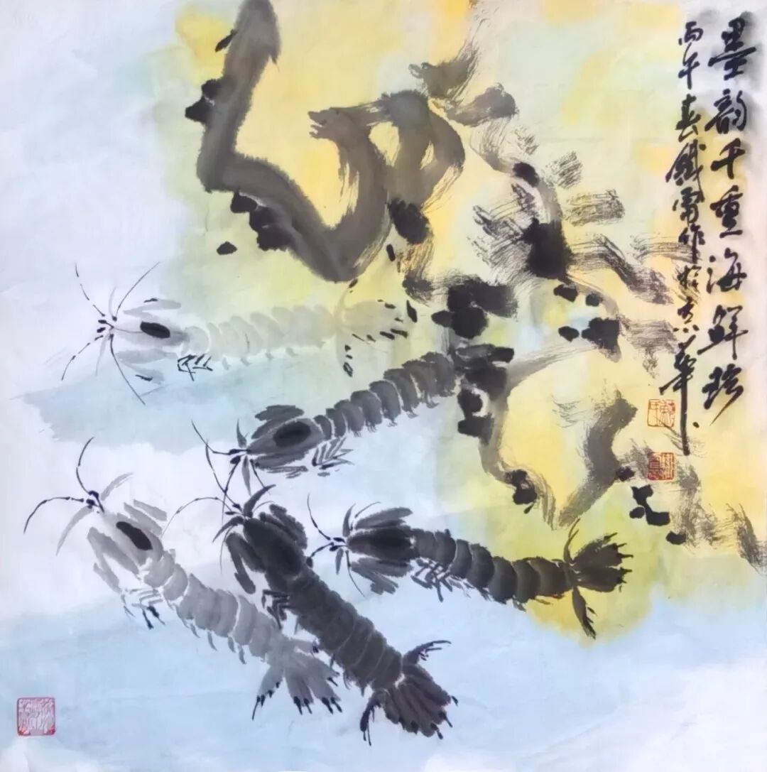其创作以形写神、以物寄情,把海边寻常风物转化为艺术语言,既承续徐渭、八大山人、吴昌硕、潘天寿的写意正脉,又贴近当代审美与生活温度。鱼虾寓“有余”“和谐”,海味载丰年吉意,尺幅之间有笔墨功力、有生活温度、有文化底蕴,可赏可藏、宜室宜家。