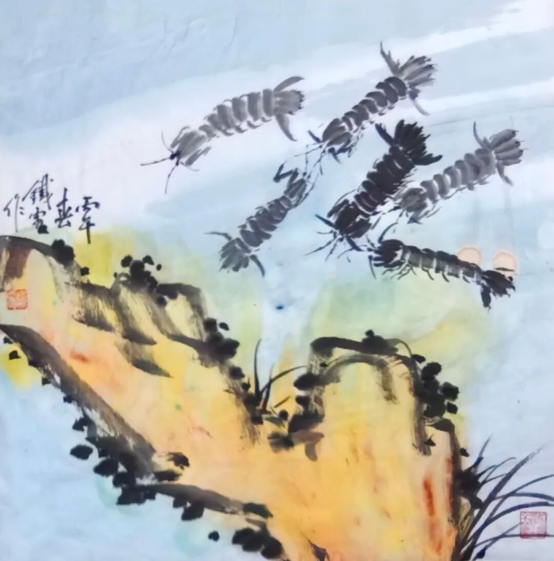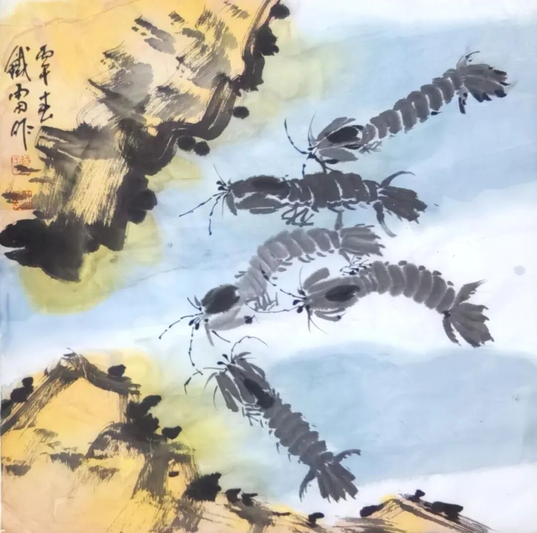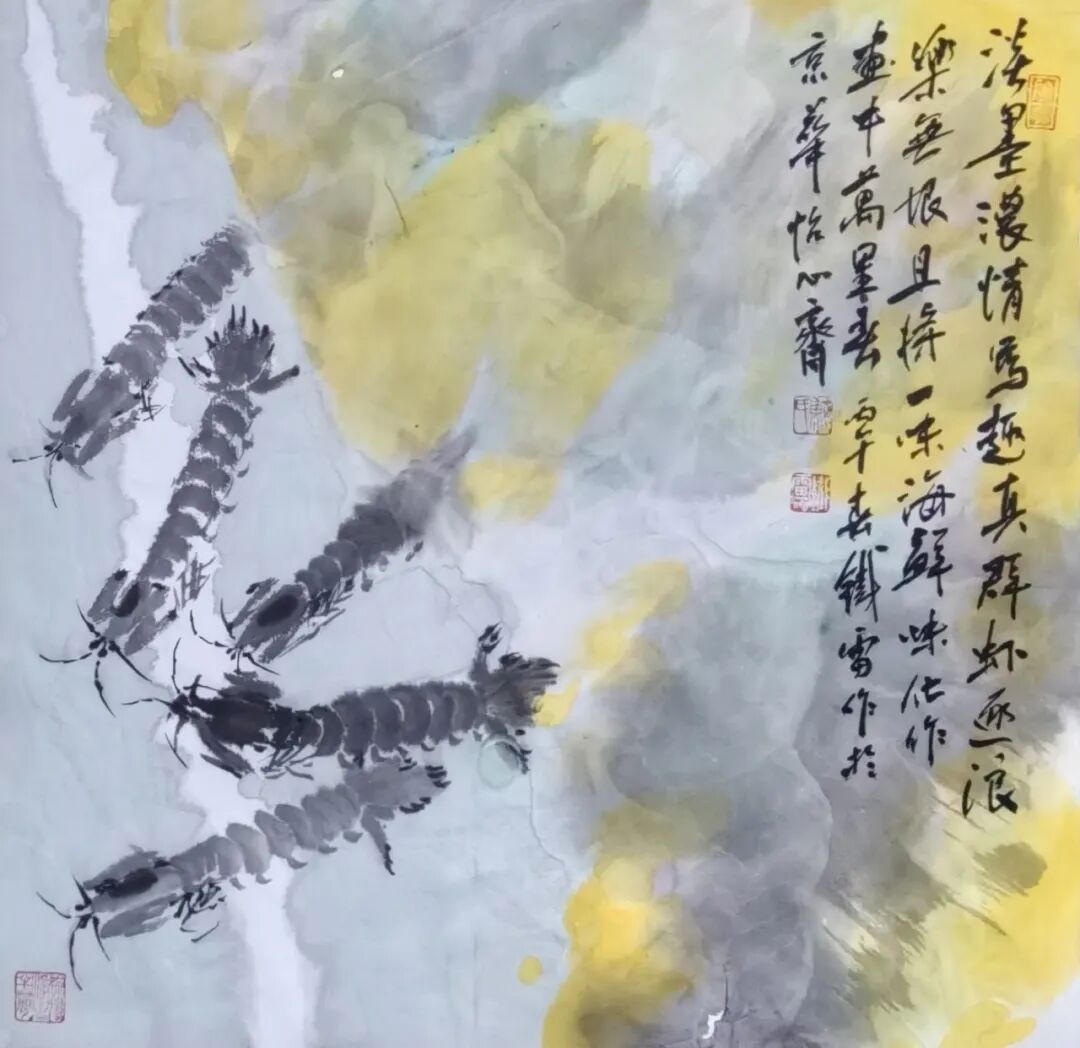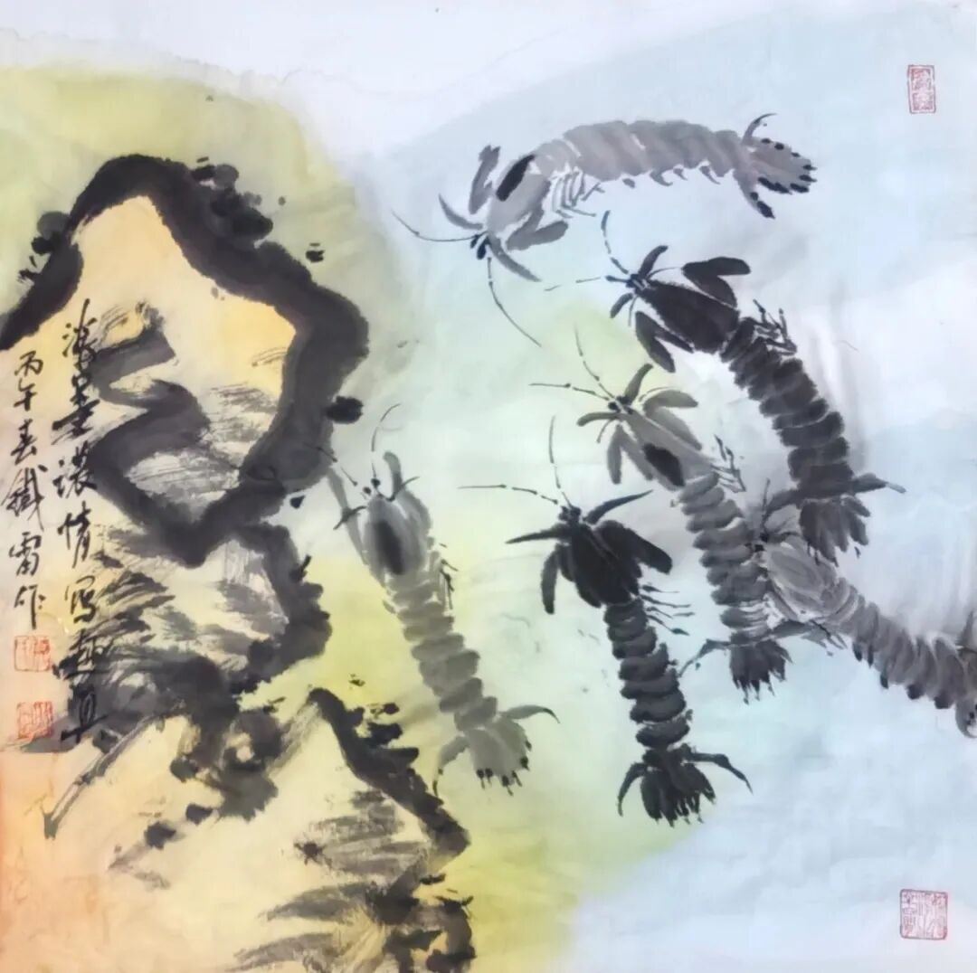 其创作以形写神、以物寄情,把海边寻常风物转化为艺术语言,既承续徐渭、八大山人、吴昌硕、潘天寿的写意正脉,又贴近当代审美与生活温度。鱼虾寓“有余”“和谐”,海味载丰年吉意,尺幅之间有笔墨功力、有生活温度、有文化底蕴,可赏可藏、宜室宜家。