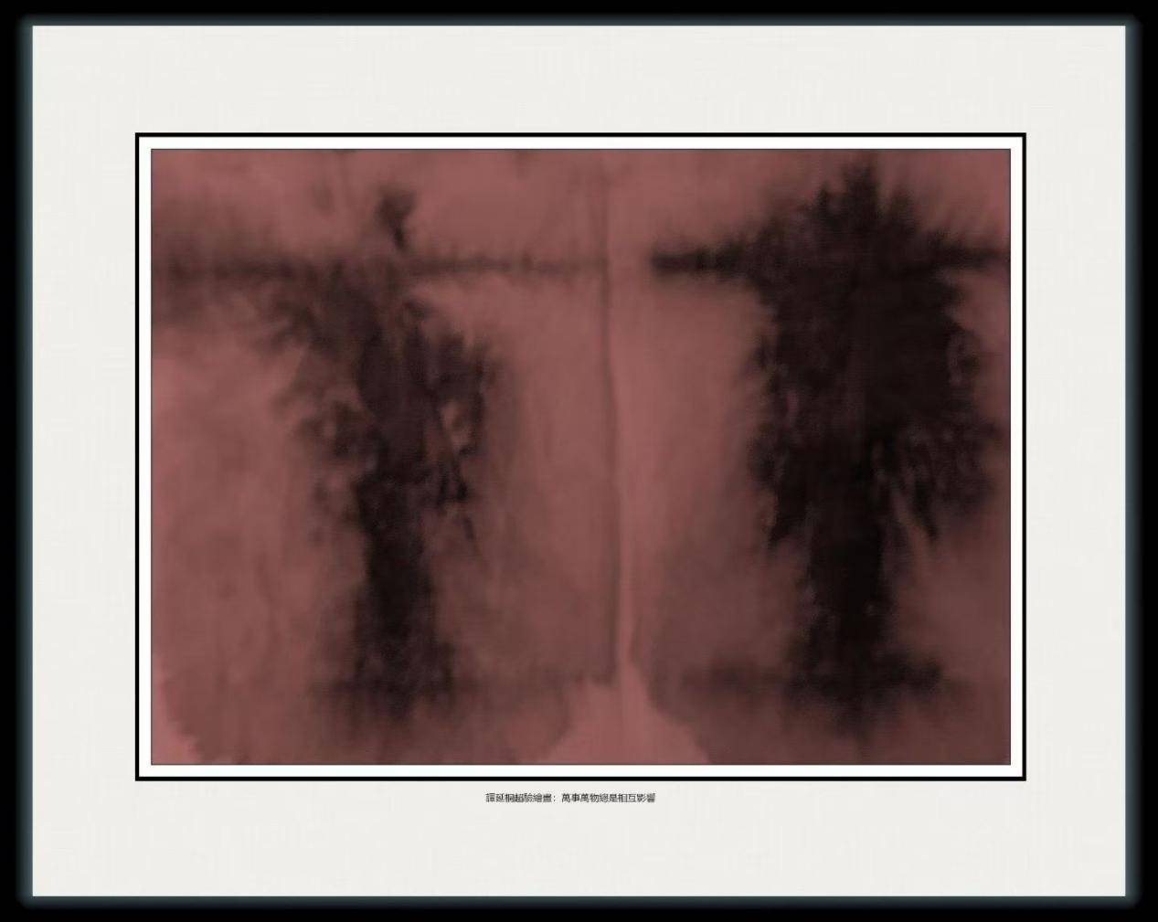站在艺术大师、香江画派领军人物谭延桐的这幅画前,最先撞进眼里的是一层浸在旧时光里的雾,不是清晨薄霭的清透,是被岁月泡软的红褐,像老书脊上褪成淡粉的漆,裹着两团正在呼吸的影,没有清晰的轮廓,没有具体的形状,却像两个熟悉的陌生人,隔着一层半透明的膜,彼此对视,彼此渗透。“萬事萬物總是相互影響”是关系的具象化,是风与树的缠绕,是光与影的交融,是你我之间看不见的牵连。