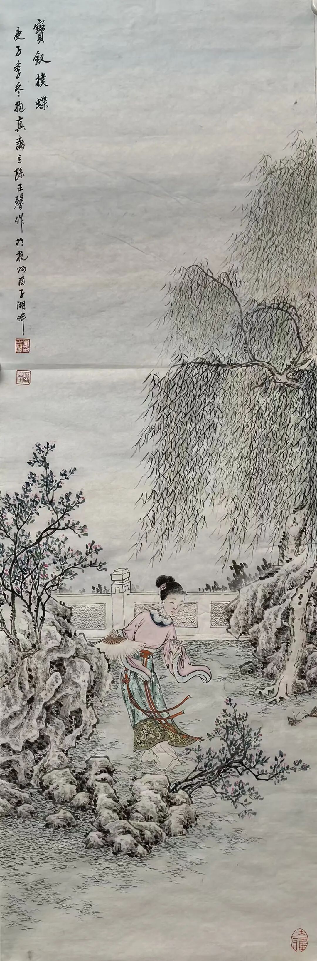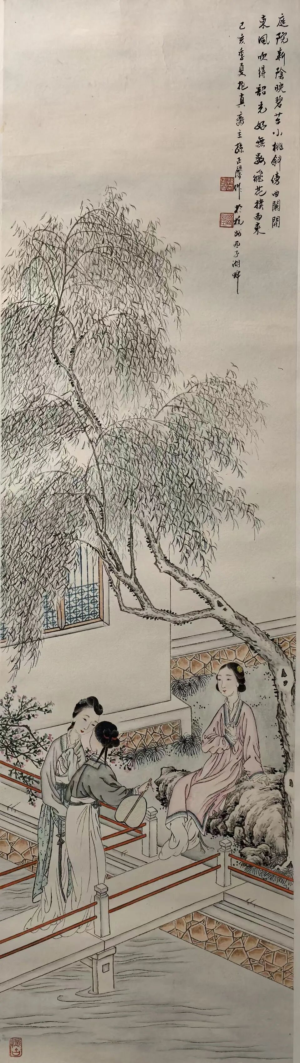 孙正馨先生绘作高雅仕女图也是一绝,观以画坛上下,能将仕女画作绘之于神者,实不多见!而今日的孙正馨先生之所以能在当下仕女画界中取得一定的艺术成就,也是与先生本人的文化素养和艺术底蕴离不开关系!观其所绘仕女众作,画中仕女是具有着十分明显的丰韵感和致雅感,而这种审美选择也无疑是与当下大众化的艳俗感有所区别!整个的人物形象用笔清晰可见,点画之间无不是有绘于姿态情绪,而人物的形态视感也是变化多端,时而矗立遥望,时而两三逗趣,衣饰所展更是素雅而不平凡,鲜明而不刻意!婉约明朗,活灵活现!