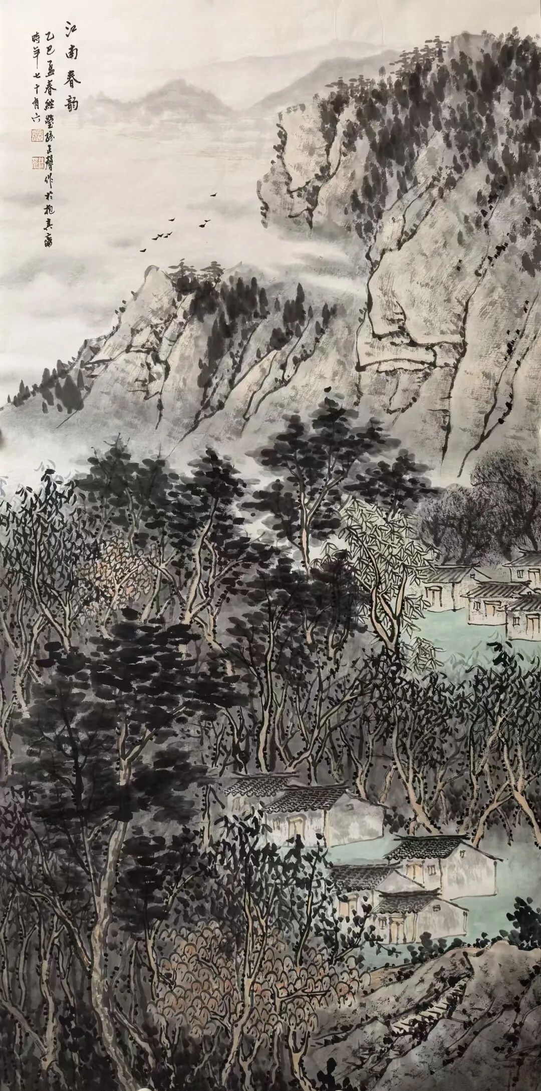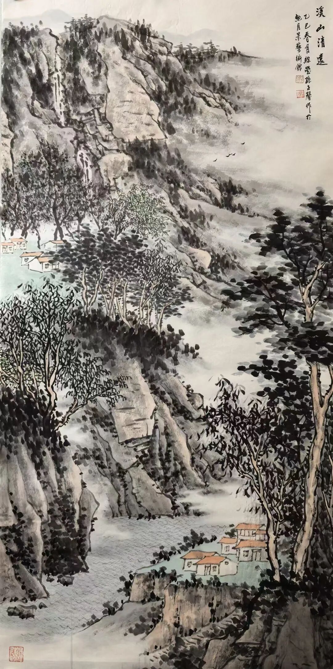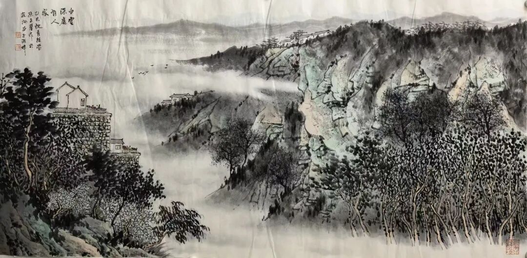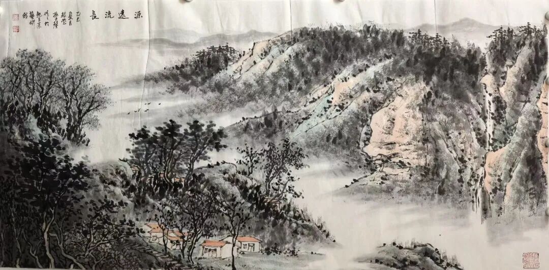 唐末五代著名画家荆浩先贤曾于《笔法记》一书中有言,是曰:“气者,心随笔运,取象不惑。韵者,隐迹立形,备仪不俗。思者,删拔大要,凝想形物!”而今日孙正馨先生绘作山水,也恰是有悟于此山水妙法之道!并且在整个的创作实践上,孙正馨先生也是一直侧重于内外兼并的艺术求索,内则有蓄于自然灵感,是以神而载道也,外则又继于古典法脉,是以品而弘今也!而如此相融兼蓄之功,也谓是澄心映道,体悟不凡!观以技法之变,用笔可塑山水情绪,用墨可积雅逸大美,且作品中的每一处笔墨变化也都是有被孙正馨注入奇崛层次,观之可由栝淡笔法中品精炼,更可于浸染墨象中鉴精神,是于咫尺之幅中尽纳千里风光也!纵览青绿示人,布局以尚契合,此之尤感境与心法同诸一脉也!