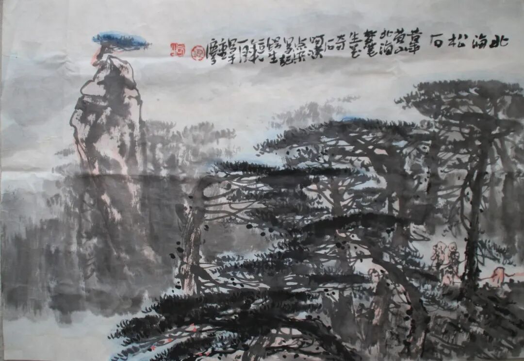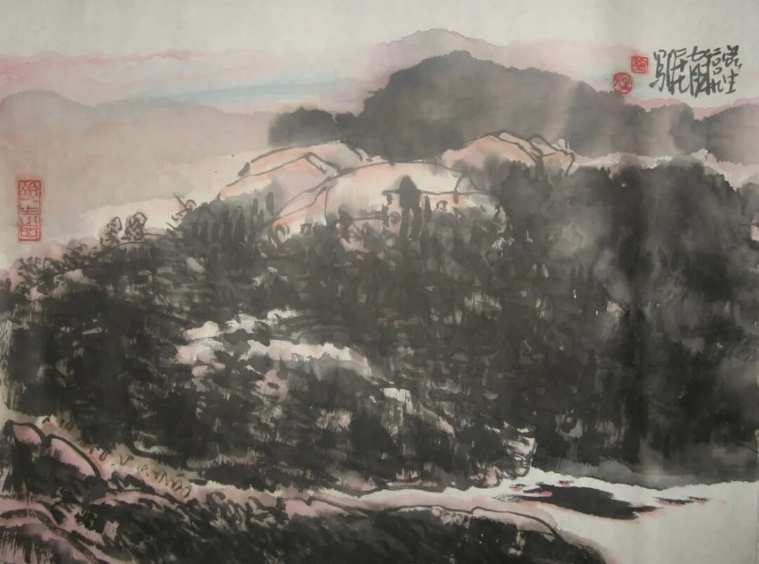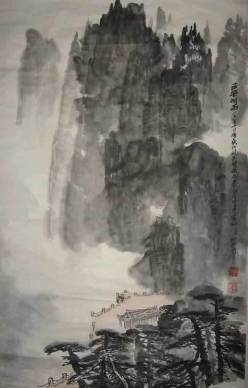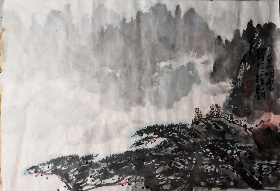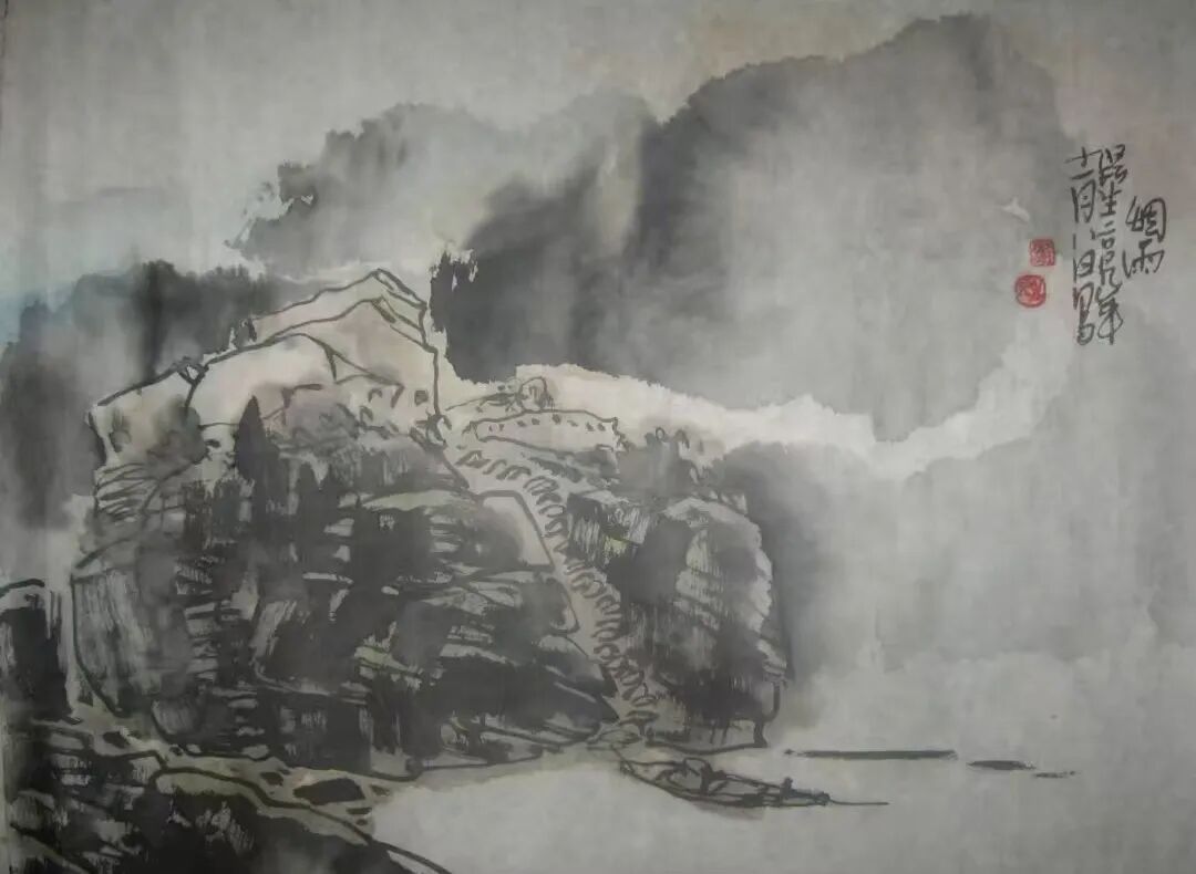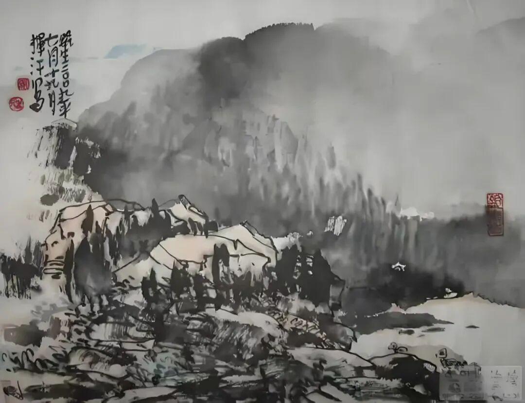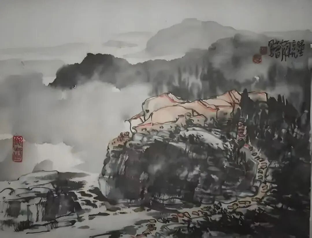 墨法上更有讲究。他用“浓破淡”,或用“淡破浓”,让墨色在宣纸上互相渗透、彼此交融。出来的效果,既不是刻板的轮廓线,也不是模糊的一团浆糊,而是既有石头的硬朗骨架,又有云雾的柔软腰身。用他自己的话说,这叫“厚而能透,苍而含润”——翻译成大白话就是:看起来挺结实,摸起来挺温柔。