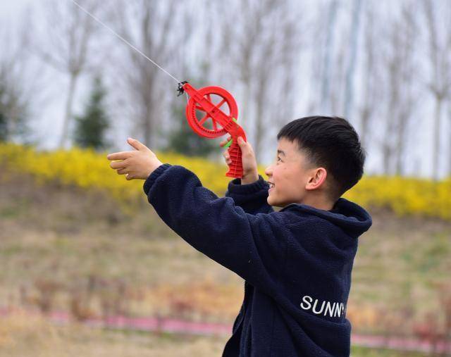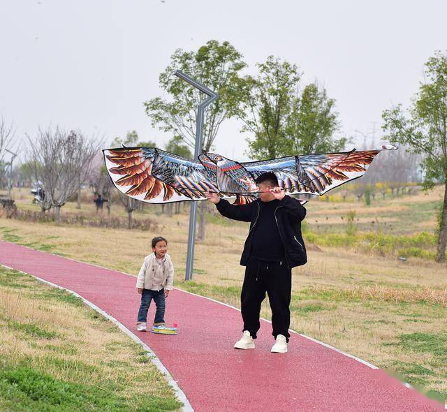 转身望去,七八岁的孩童在父亲鼓励下迎风疾跑,手中印有卡通动物的纸鸢扶摇直上。虽满头大汗,却眉开眼笑,喜不自胜。