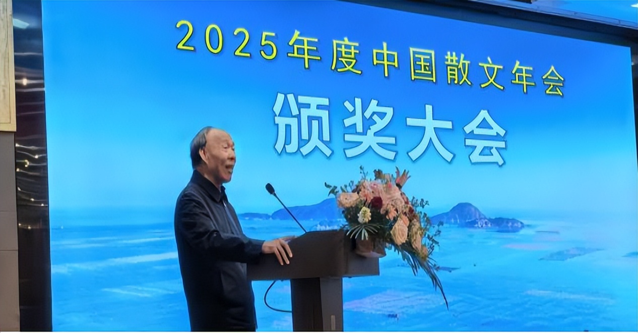 将主编发言:在今年评出的优秀作品当中,作者都是原创,没有一篇AI文章的影子,这是散文家、编辑、读者自觉遵守的一条红线。”提到今年获奖的优秀作品时,他说:“梁晓声先生的散文《陕北道情》(原载《人民日报》2025年6月9日),虽然是一篇游记,却隐藏着作者浓烈的家国情怀。文章描写了作者春日走访陕北地区的一户窑洞人家,进而写到新时代农户大胆转变思路,搞活“乡村民宿”生意的故事,令人欣喜。作者说:“我们便在那里吃午饭。农家乐是村产,由村里一对能干的中年夫妇承包。他们的女儿在西安读师范,儿子在县城读高中。他们的心情与陈子昂截然相反,忙得从容不迫且又喜上眉梢。”“喜上眉梢”一词,道出了今天陕北人活得真的是有滋有味呢。”他认为,这种从泥土中生长出来、带着呼吸与体温的文字,正是文学永不褪色的源泉力量所在。