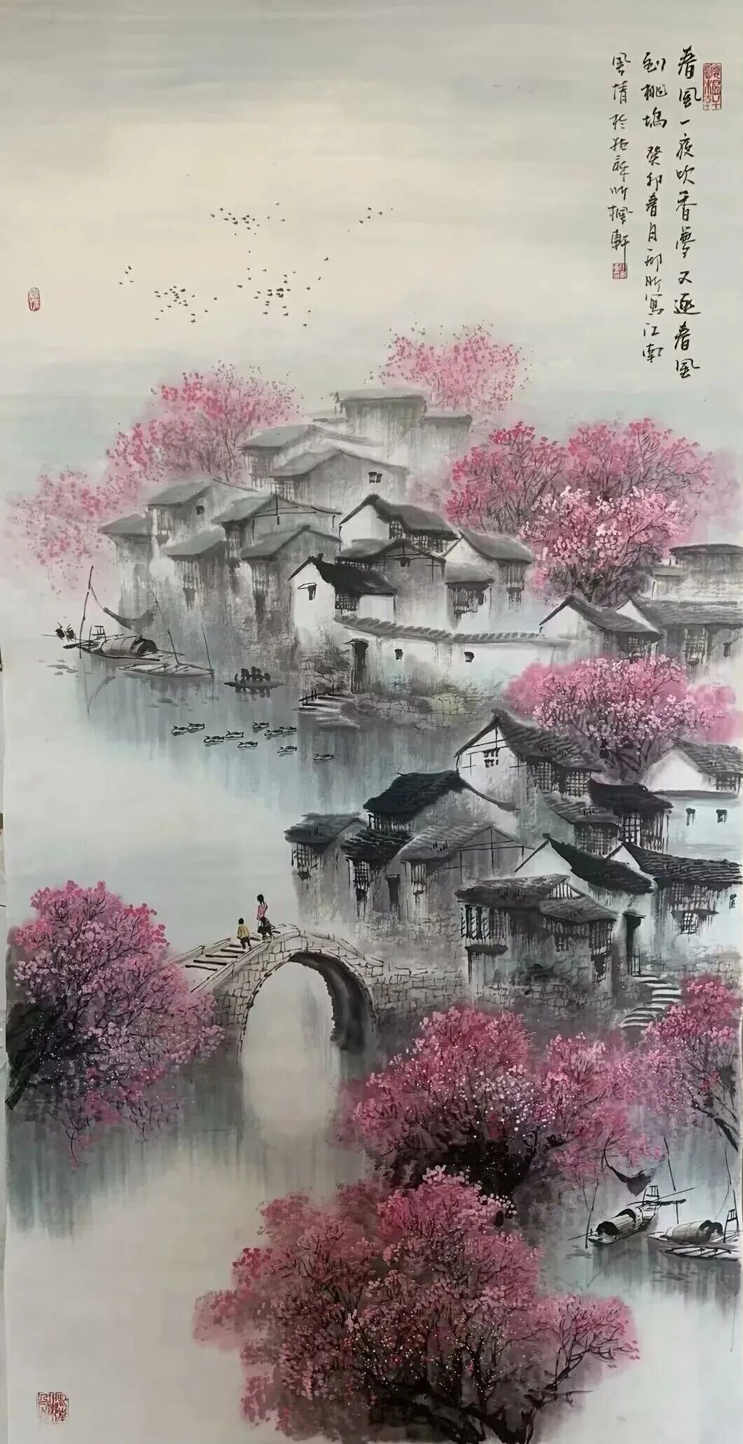 邢昕 职业画家。自幼习画,就读于苏州工艺美术学校。现为中国书画家协会会员,中华书画研究院理事,中国国画家协会常务理事,中国美术研究会研究员,江都书画院特聘高级书画师,苏州市美协会员。他擅长画水乡兼攻山水,把中国最传统江南水乡小镇、小桥流水,细腻精致的绘于宣纸上,无论近看远观都会给人以出神入化的境界。看起来简单干净的寥寥几笔,勾勒出黑瓦、白墙虚实变换的江南风情。近年来多次参加省内外各级展览并获奖。作品《水乡春色》参加央视七套举办中国美协指导的描绘新农村全国美术作品巡展中荣获优秀奖,在纪念毛主席诞辰110周年“风光这边独好”全国书画大赛中参赛作品荣获一等奖,作品参加“中国电影百年书画大展”荣膺佳作奖,作品参加长沙市文化艺术中心“欧阳询杯”书画大展获二等奖等等。作品及个人传略入编《新世纪新人新作博览》、《中华当代书画作品博览》、《现代书画名家精品观止》、《中国书画藏典》等多部大型书画集,作品被海内外各界人士收藏。