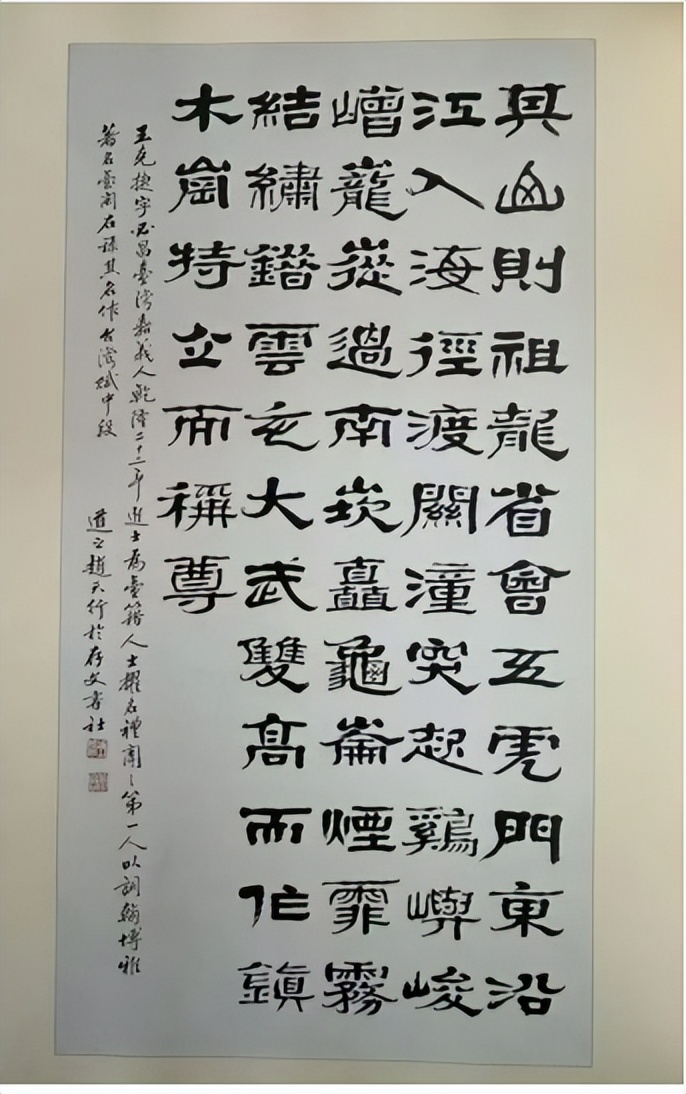另,赵天行先生在自述中忽略了一个很重要的细节,那就是不知道为什么没有谈到他的外祖父李振唐对他的影响。据早些年我从网上查到的资料显示:“赵天行十一岁时入其外祖父李振唐所办的私塾学习,始习《三字经》《千字文》,后渐涉《论语》《孟子》。李振唐不重死记硬背,而强调“知其然更知其所以然”,常以身边事例讲解义理,使赵天行初识学问之真味与人格之担当。十三岁那年,曾祖母病逝,家中连遭变故,赵天行辍学帮持家务。”为什么我要说明这一点,因为我在同学赵洪程家里见到过李振唐的隶书真迹,赵天行先生的隶书与其及其相近。可见,李振唐先生对赵天行先生的影响是不容忽视的。