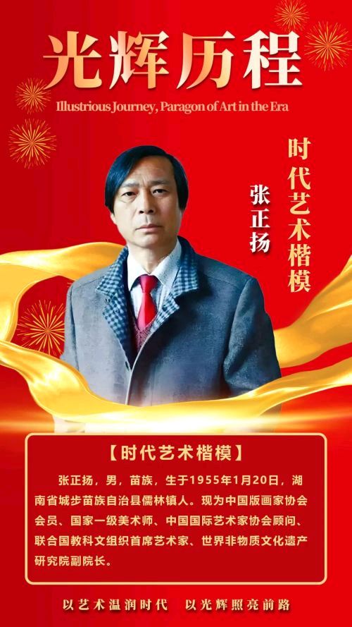 张正扬,男,苗族,生于1955年1月20日,湖南省城步苗族自治县儒林镇人。现为中国版画家协会会员、国家一级美术师、中国国际艺术家协会顾问、联合国教科文组织首席艺术家、世界非物质文化遗产研究院副院长、联合国国际艺术节首席艺术家评委、联合国文化艺术评审委员会副主席。城步苗族自治县政协正县级干部、城步苗族自治县文联名誉主席。2020年6月23日荣获“亚洲文化艺术奖”,并授予“亚洲文艺勋章”。2020年7月8日荣获“大国崛起————国家文化强国奖”,并授予“国家一级文艺大师”荣誉称号。2020年8月8日荣获“国际文艺巅峰成就奖”,并授予“世界当代十大顶级文艺大师”荣誉称号。2021年2月25日荣获“联合国艺术终身成就奖”,并授予“联合国文化艺术勋章”。2021年3月6日荣获“国家十四五文化建设奖”,并授予“新时期国家文艺开拓者”和“国家十四五文化建设先锋旗手”荣誉称号。2021年3月31日荣获“达芬奇国际艺术金奖”,并授予“影响世界十大金牌艺术家”荣誉称号。2021年6月10日荣获“卢浮宫世界艺术金奖”,并授予“卢浮宫馆藏级艺术家“荣誉称号。2021年6月16日荣获“国际艺术梵高奖“,并授予“国际文艺最具影响力人物”荣誉称号。2021年10月10日荣获“齐白石国际艺术金奖”,并授予“东方艺坛巨擘”荣誉称号。2021年12月10日荣获“世界最高艺术小金人奖”,并授予“当代世界顶级艺术大师”荣誉称号。