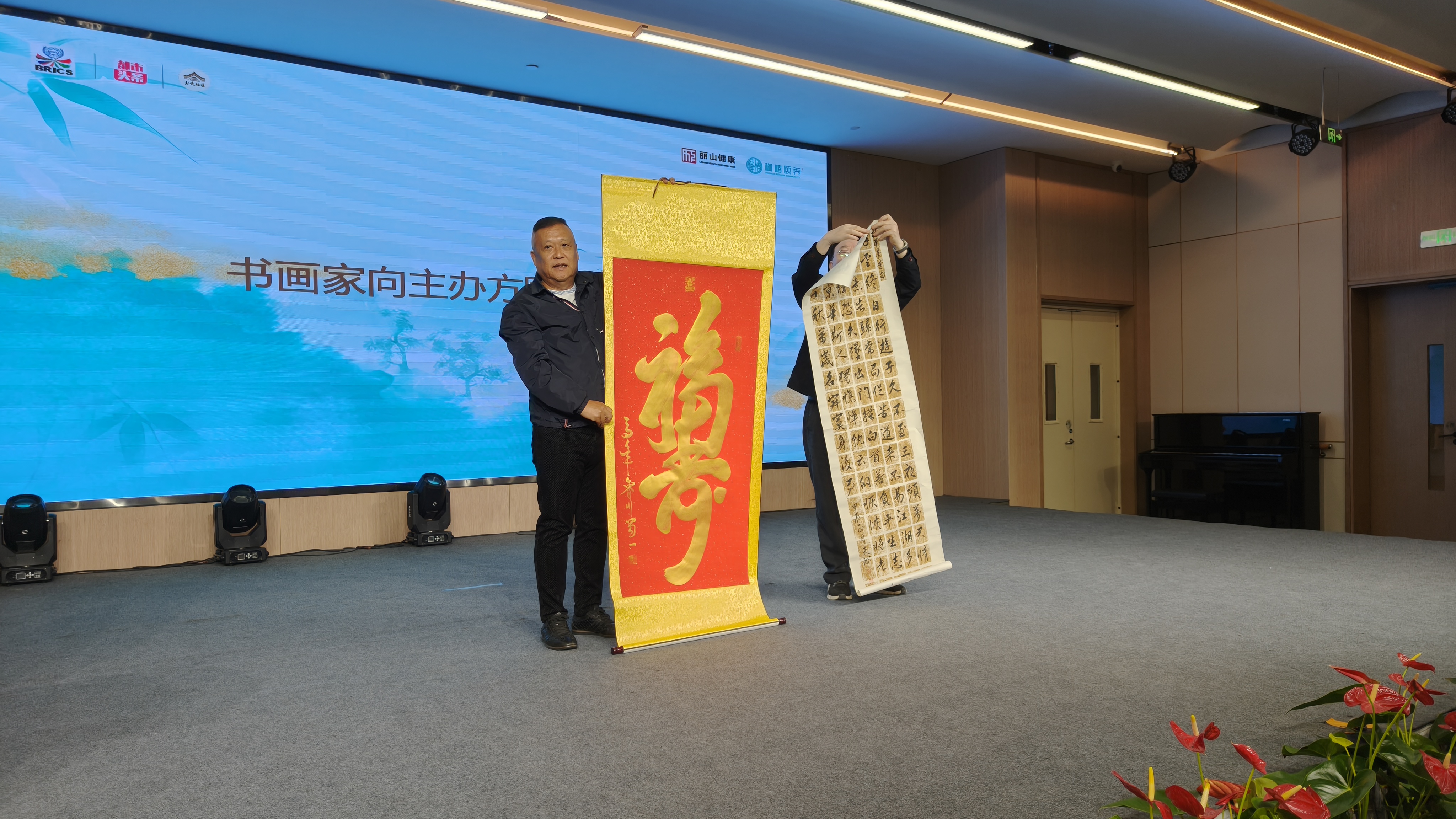 获奖代表,向活动主办方赠送了他们的书画作品。