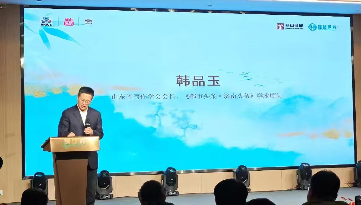 山东省写作学会会长、《都市头条济南头条》学术顾问韩品玉致辞。他说,作为《都市头条•济南头条》的学术顾问,请允许我非常荣幸地向今天到场的每一位获奖者,道一声真切的祝贺,祝贺《都市头条•济南头条》粉丝总数达到23.6万,在整个《都市头条》位居第一;累计发稿量达到41000余篇,也位居平台第一。今天的颁奖仪式,就是“竹庐文艺奖”吐蕊怒放的盛花期。