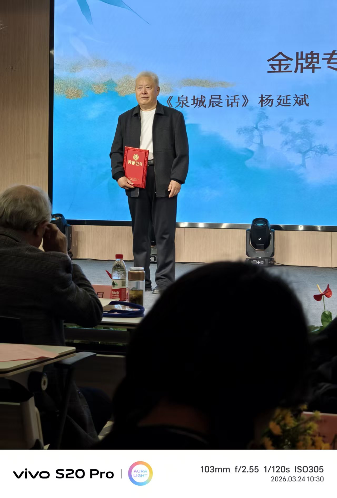 槿椿康养发展(山东)有限公司副总经理闫纪昌致辞,他对第三届“竹庐文艺奖”颁奖典礼在槿椿颐养中心举行表示热烈欢迎和诚挚祝贺。他说:“竹庐文艺奖”自创办以来,已连续三载花落槿椿,这是一份沉甸甸的信任,更是对槿椿颐养深耕文化养老、守护精神家园的莫大肯定。我们将继续坚守文化养老初心,持续完善文化设施、丰富文化活动,为长者搭建更多展示自我、交流学习的平台。他表示,十分期待继续与《都市头条•济南头条》和竹庐书院携手,让文艺之花在槿椿常开常新,让文化养老的美好惠及更多家庭。