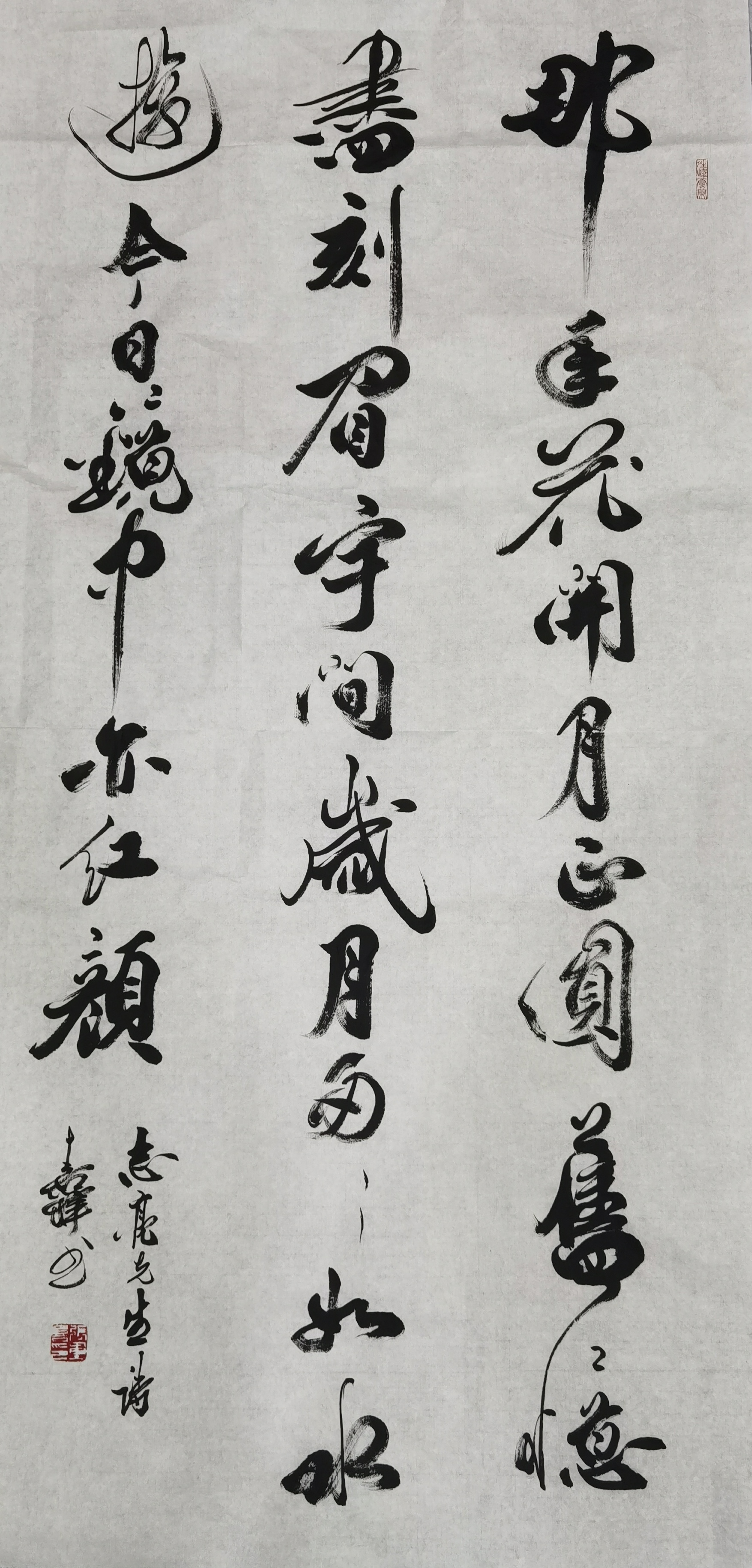 在传承与创新的道路上,张重喜先生始终坚守传统、勇于创新,既注重笔墨技艺的锤炼,又注重艺术理念的更新,让书法艺术在传承中发展,在创新中前行,进一步丰富了艺术情感表达的形式,拓展了艺术映照社会的维度。