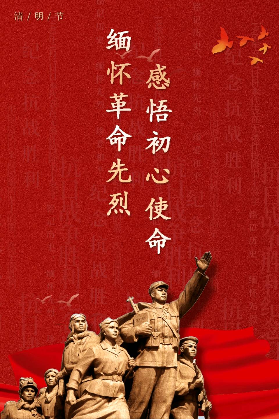 3.回顾那段艰难岁月,我们看到的是破碎的山河和风雨飘摇的时光。是你们,高举信仰的火炬,冲破黑暗;是你们,挺起民族的脊梁,肩负起救亡图存的重任。在枪林弹雨中,你们勇往直前,视死如归;在刑场囚笼里,你们坚守信念,铁骨铮铮。