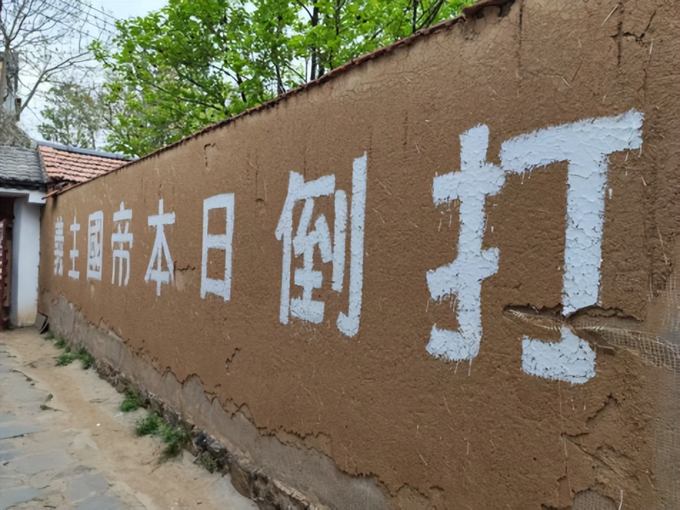 抗日小学北墙上那段白色大字,似抗日将士铮铮誓言,令人热血沸腾。