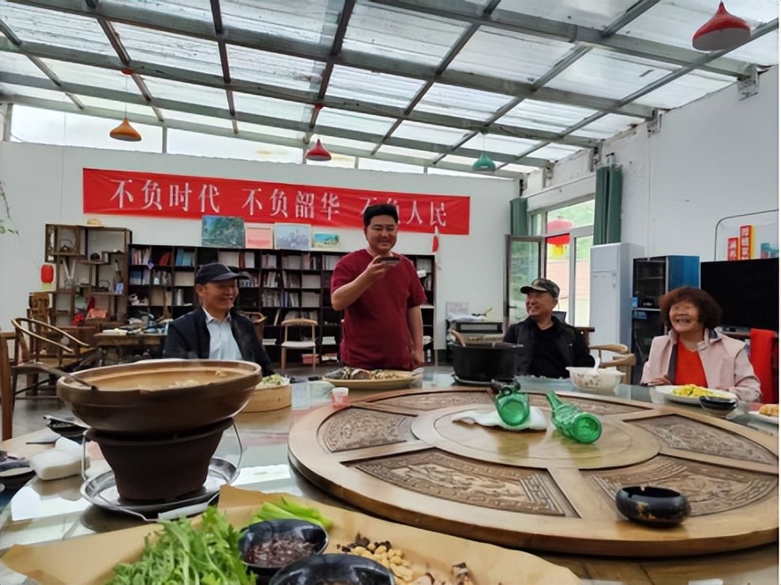 座谈交流时,大马峪红色教育基地经理张山峰,热情欢迎来自淄博、滨州两地的文友。