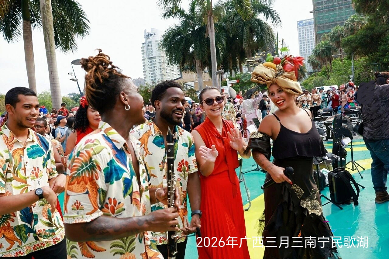 来自越南的粤语歌曲《叮叮当当》,马来西亚霹雳怡保市青少年华乐团联合广西少年共同弹奏经典东南亚民歌,巴西名曲《雀鸟》与广西民歌《春江好比三江水》交响辉映,融入三月三盛会,音乐连世界。