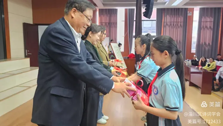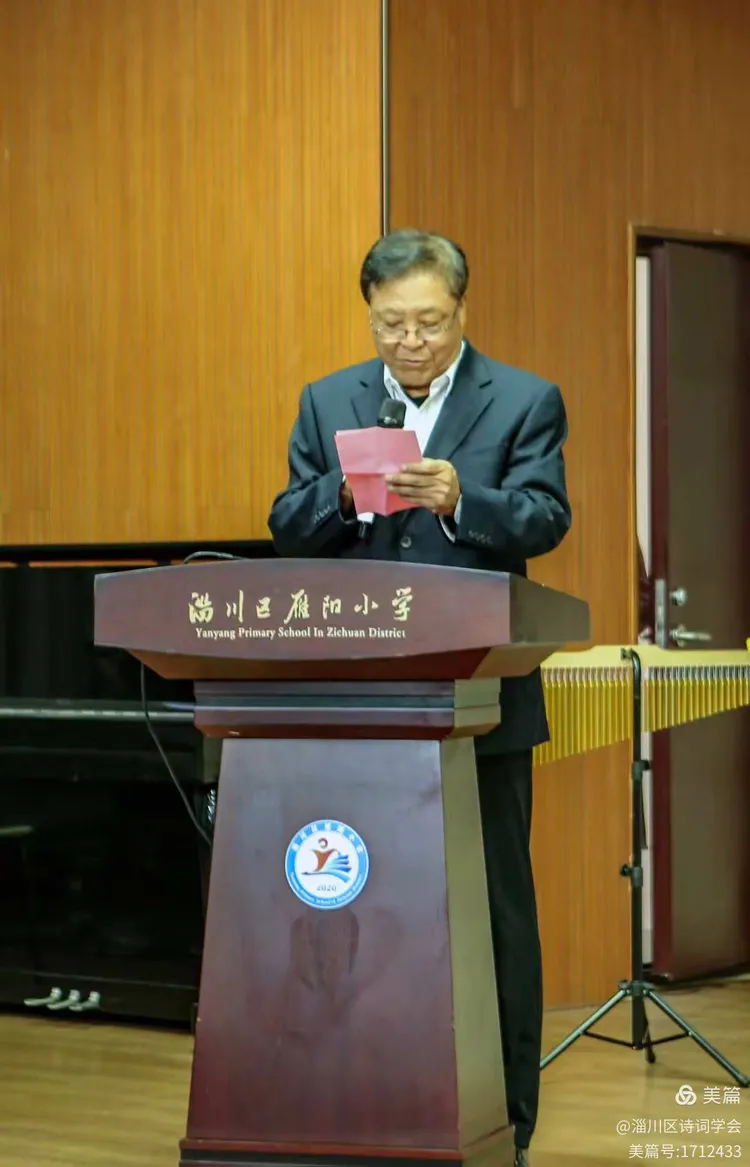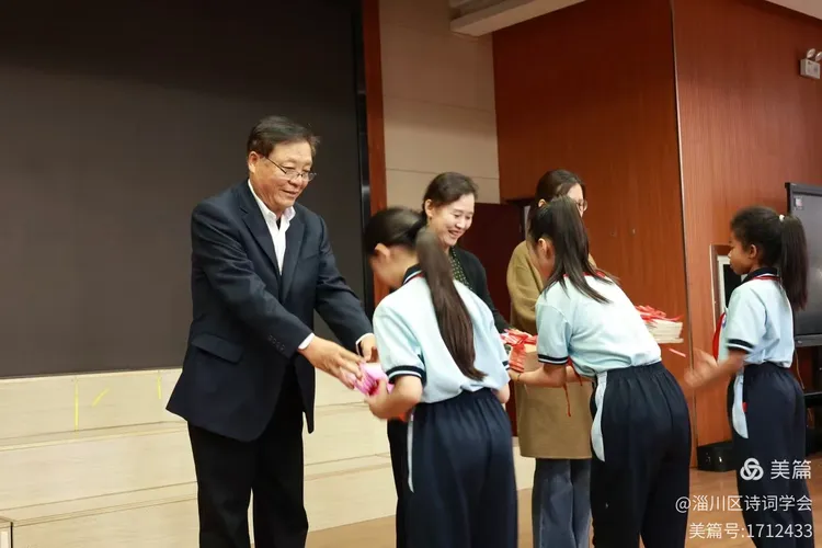会上,边会长在讲话中从中华优秀传统文化的高度出发,指出诗词在滋养心灵、培育审美、增强文化自信中的重要作用,寄望同学们在阅读与吟诵中亲近经典,在诗意熏陶中不断成长。与此同时,区关工委、淄川新华书店与区诗词学会三方联合,向雁阳小学集中捐赠经典名著、诗词文集、科普读物及儿童文学等优质书籍为学校“书香校园”建设注入了更加丰富而坚实的文化资源。江波、冯琳均、岳崇刚、孙丽娟等领导也发言祝贺,进一步丰富了活动内容。