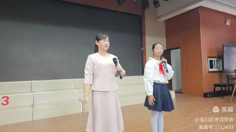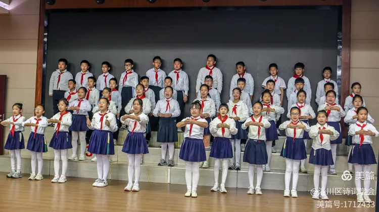 诗意,在吟诵声中缓缓展开。活动现场,学生们率先登台,以诗词合唱与朗诵的形式,带来清新自然的表达,童声朗朗,情感真挚,在一字一句中传递出对经典的理解与热爱。随后,在赵玉霞老师的引领下,区诗词学会的老师们登场,以古诗词连唱与集体吟诵的形式,将经典作品娓娓呈现。从《鹅》《画》《咏柳》《静夜思》《赠汪伦》到《出塞》,从《敕勒歌》《望岳》到蒲松龄的《般河》,一首首熟悉的篇章在声声吟唱中焕发新的生命。吟诵,让诗词由文字走向声音、走进心灵。在这样的氛围中,孩子们耳濡目染,让诗意在心中悄然生长。