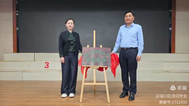 在热烈的掌声中,揭牌仪式隆重举行。雁阳小学桑刚校长首先致辞,接着边立成副会长与江波副主席共同为杨逸明先生贺诗墨宝揭牌、区新华书店总经理冯琳均与桑校长共同为“拾光诗社”揭牌,标志着诗社正式成立启航。“拾光”之名,寓意深远,既是拾取光阴,珍惜当下,也是采撷诗词之光,滋养心灵,更寄托着记录成长、留存童年的美好愿望。