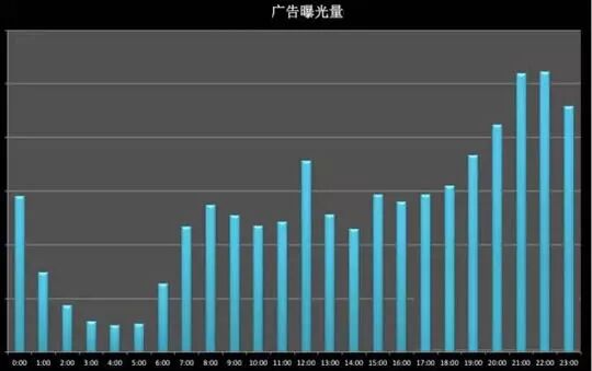 (4)12:00--15:00广告曝光量有所降低,这说明大家都吃完饭开始上班;