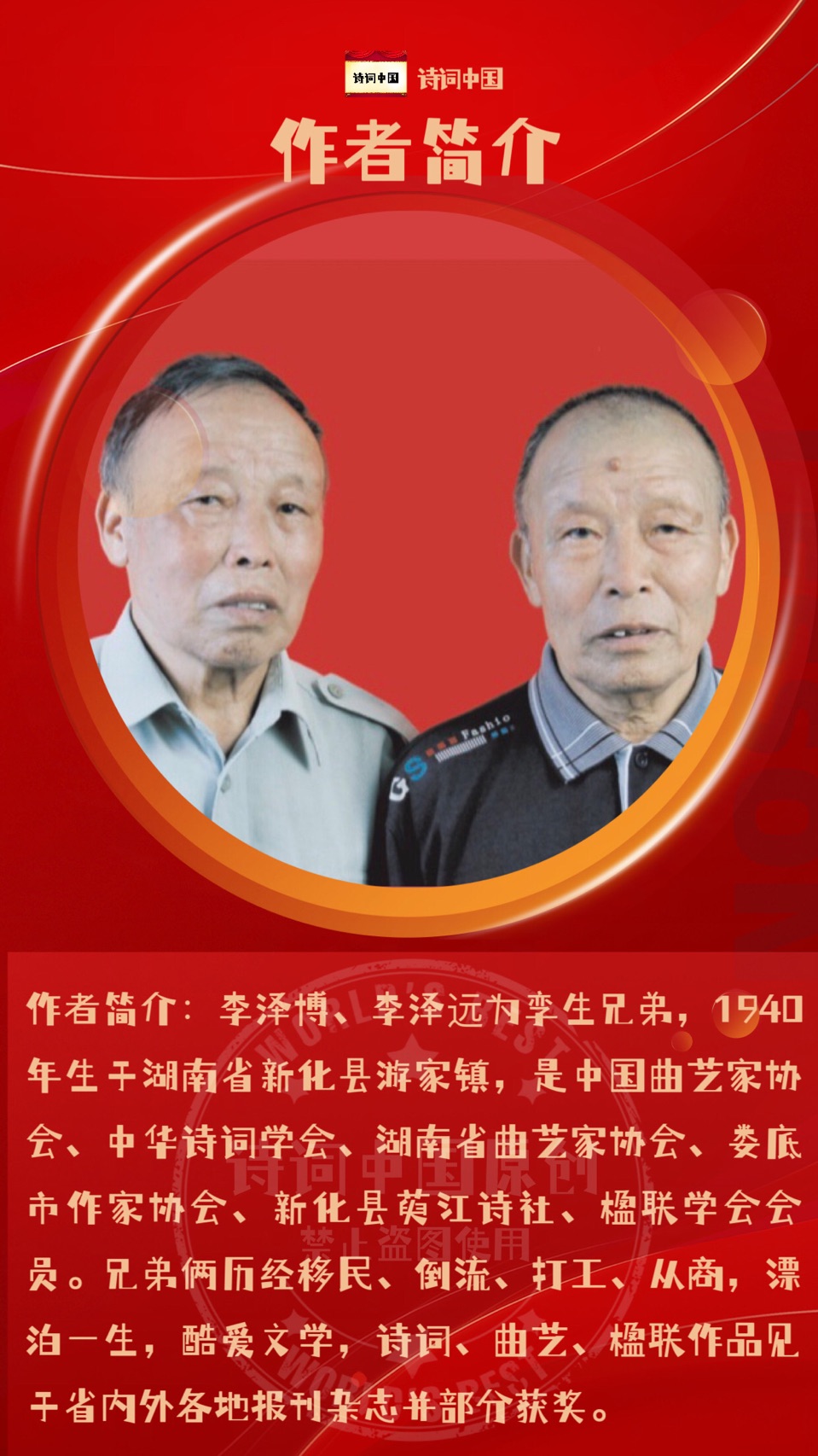 【诗词中国】精品佳作《诗词十首》作者:李泽博|李泽远