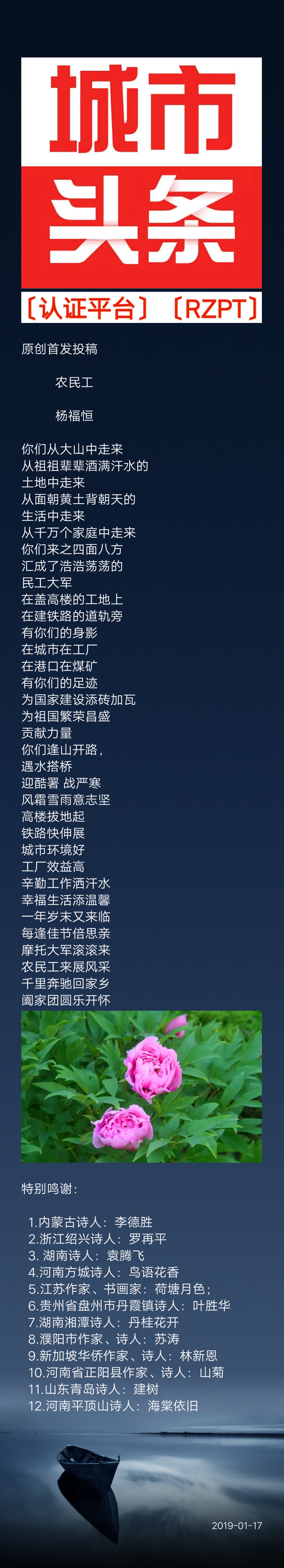 平顶山头条向全球发布诗人杨福恒精品诗歌
