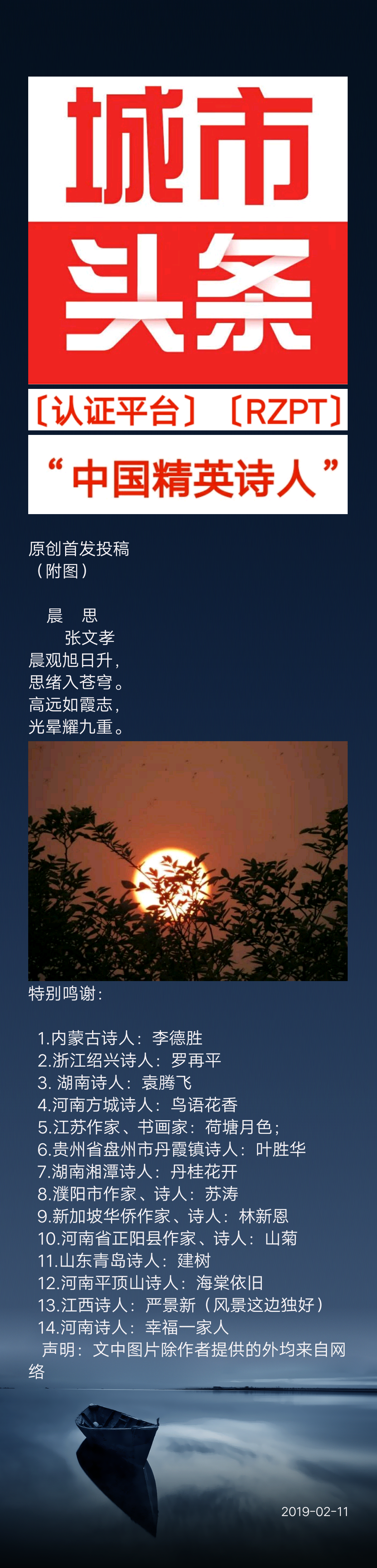 平顶山头条向全球发布诗人张文孝精品诗歌
