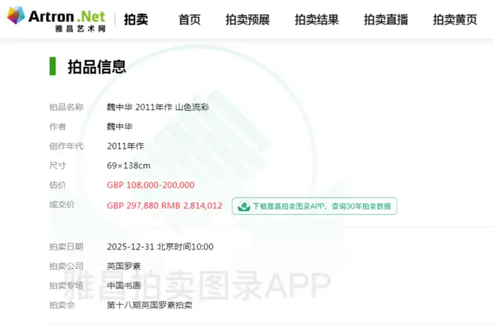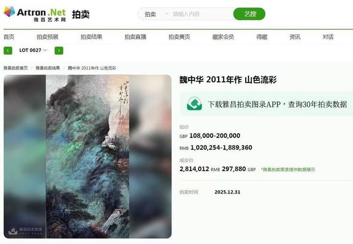 当代海派大家魏中华巨作《山色流彩》高价成交,创艺术市场新纪录