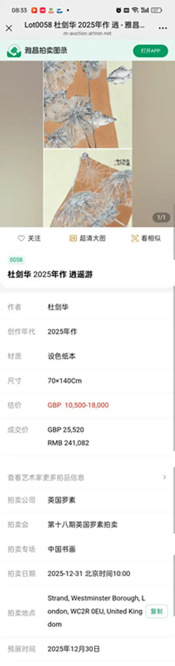 杜剑华作品在英国罗素拍卖公司落锤成交