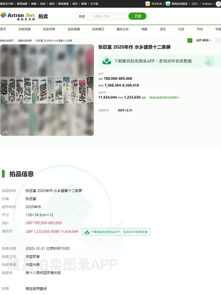 张巨富两幅力作在英国罗素拍卖行年度收官专场双屏千万落槌