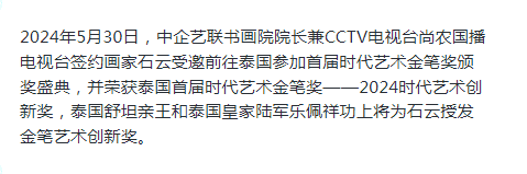 石雲荣获泰国首届时代艺术金笔奖——2024时代艺术创新奖