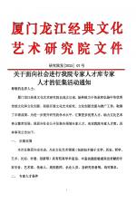 关于厦门龙江经典文化艺术研究院专家人才库,专家人才征集通知。