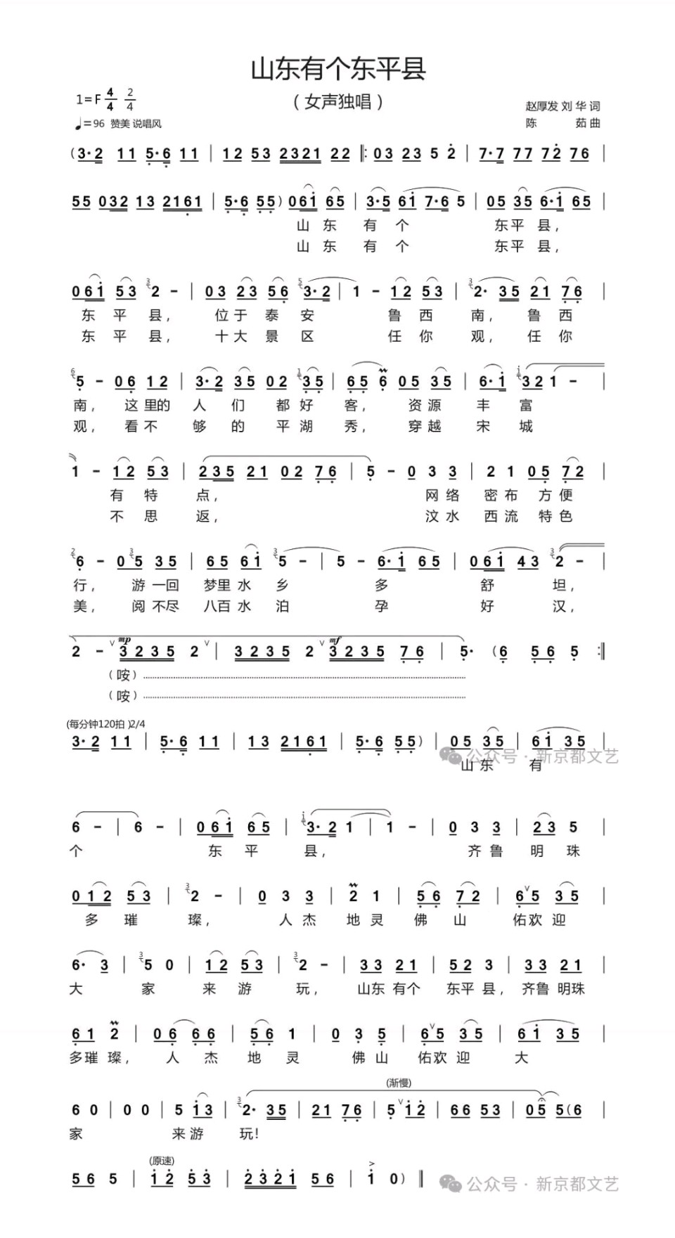 供稿:陈茹《山东有个东平县》(歌曲)13844期~新京都文艺