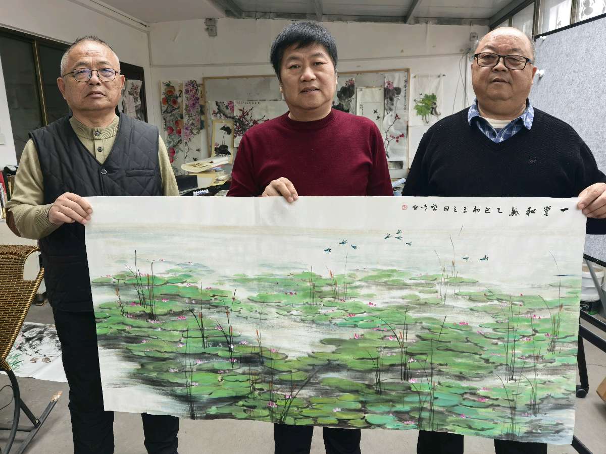 正月初三,画家康斌到肥城鑫豪书画工作室拜年并开展创作交流活动