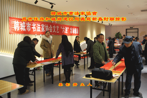 韩城市书法家协会为市住房和城乡建设局义写新春对联掠影 文图/墨影斋主人