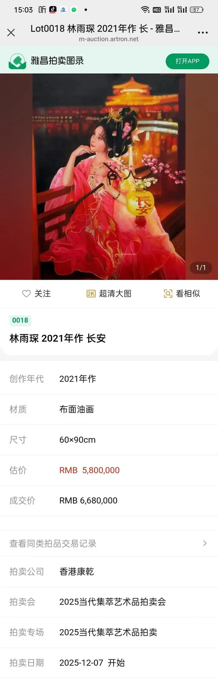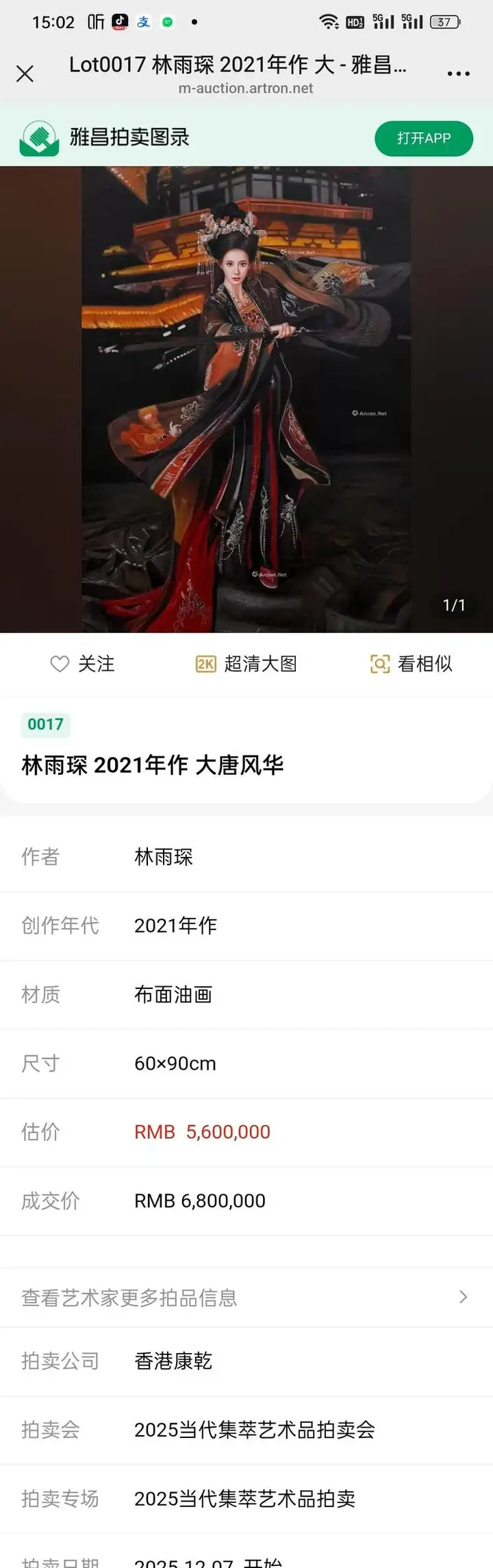 艺术家林雨琛作品大唐风华在香港康乾拍卖成交