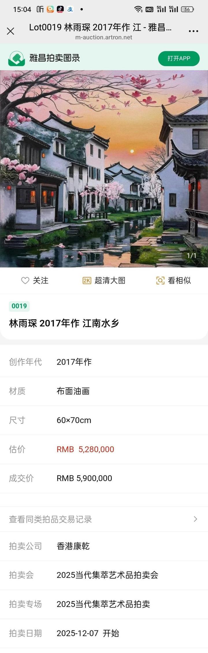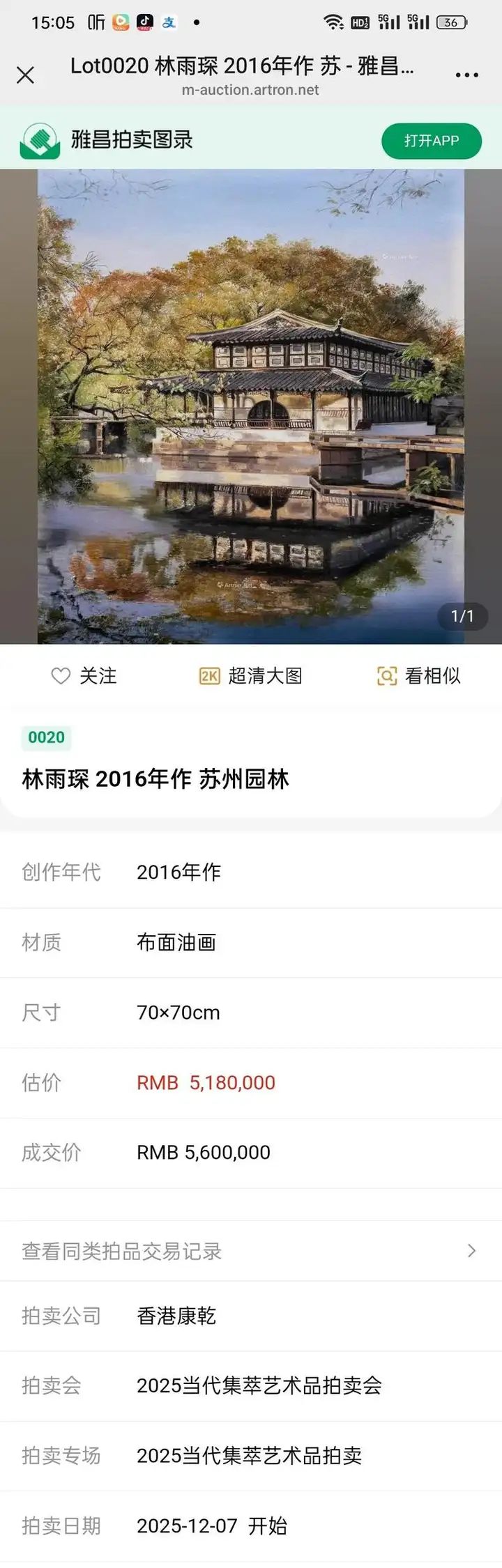 油画家林雨琛作品苏州园林在香港康乾拍卖成交