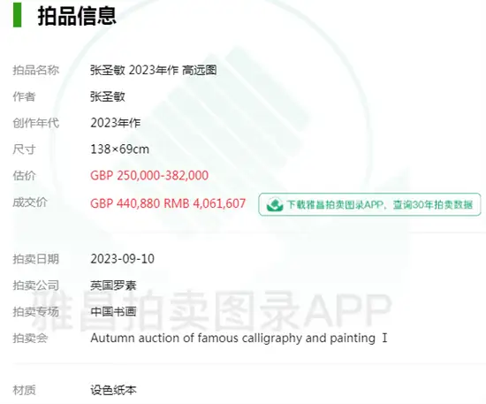 英国罗素中国书画拍卖专场张圣敏《高远图》拍出406万