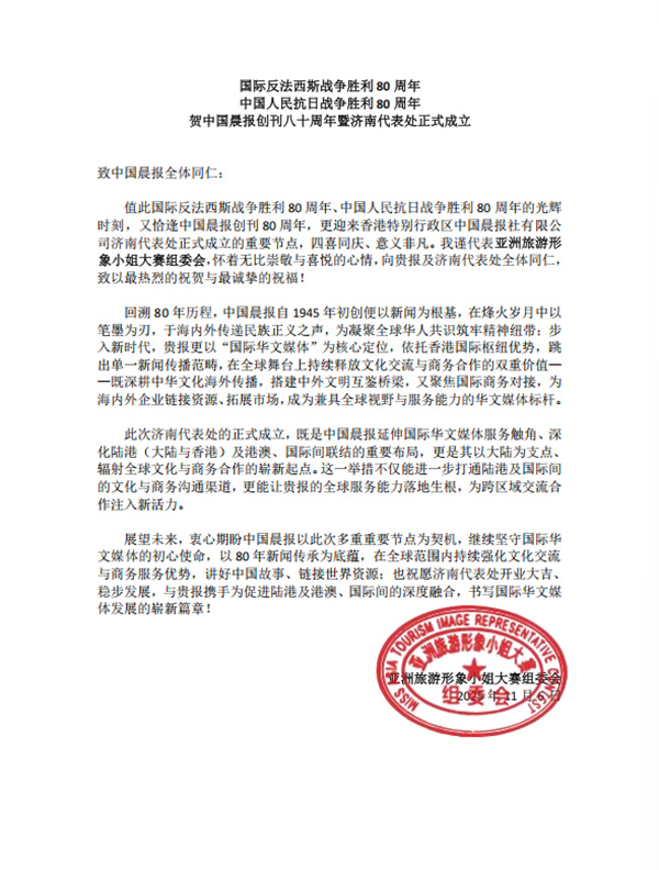 亚洲旅游形象小姐大赛组委会贺中国晨报双庆:以文旅与传媒之力共促国际交流新篇