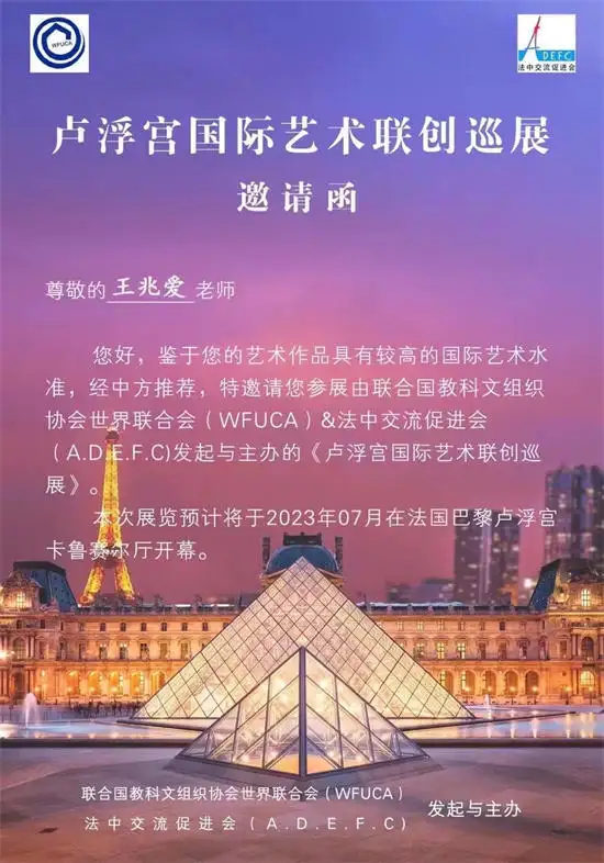 王兆爱参加——2023年国际艺术联创联展法国卢浮宫卡鲁赛尔厅展