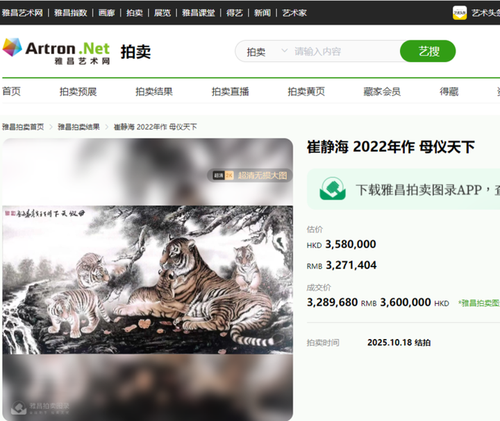 画家崔静海 作品《母仪天下》在香港瀚海拍卖公司以360万元成交!