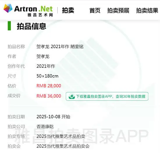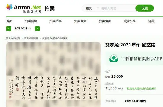 贺孝龙书法作品《陋室铭》成功落槌,艺术价值再获市场认可