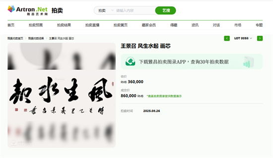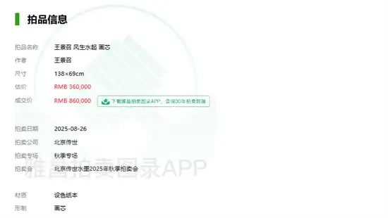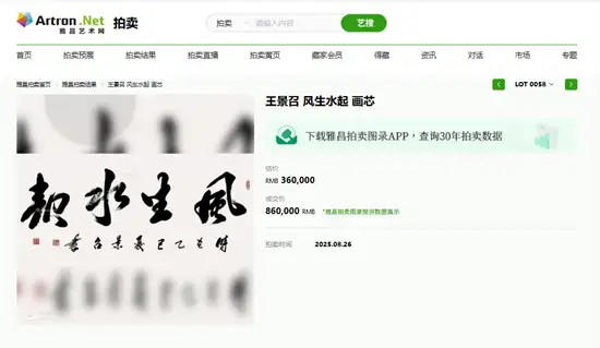恭贺著名艺术家 王景召作品在北京传世水墨拍卖公司落锤成交